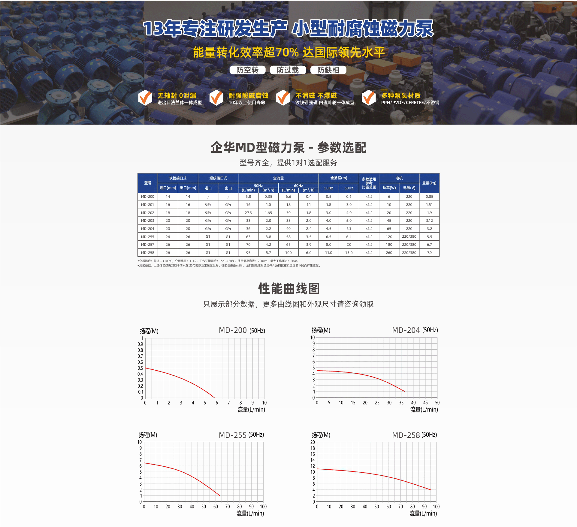 介質(zhì)溫度:0°~80°(PPH),0°~90°(PVDF),-10°~100°(CFRETFE)